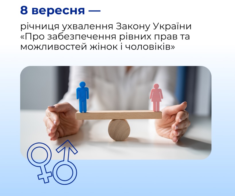 8 вересня 2025 року – річниця ухвалення Закону України «Про забезпечення рівних прав та можливостей жінок і чоловіків», який сформував нормативне підґрунтя для утвердження гендерної рівності в Україні.
