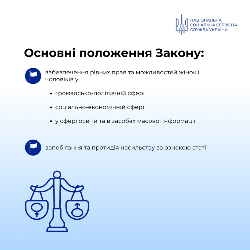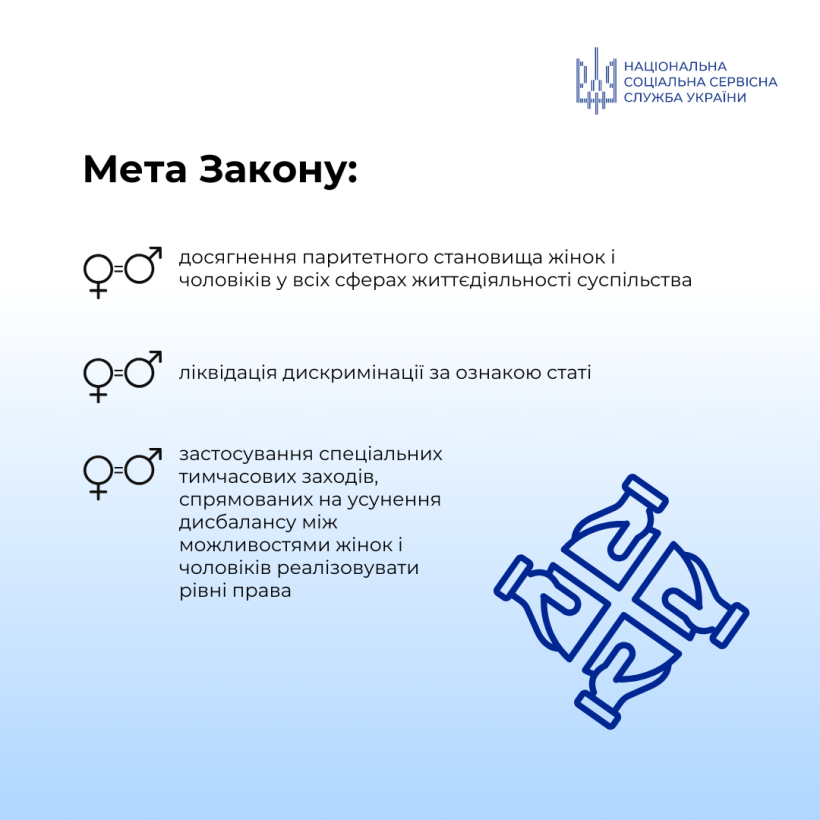 Закон спрямований на досягнення паритетного становища жінок і чоловіків у всіх сферах життєдіяльності, а також подолання дискримінації за ознакою статі.