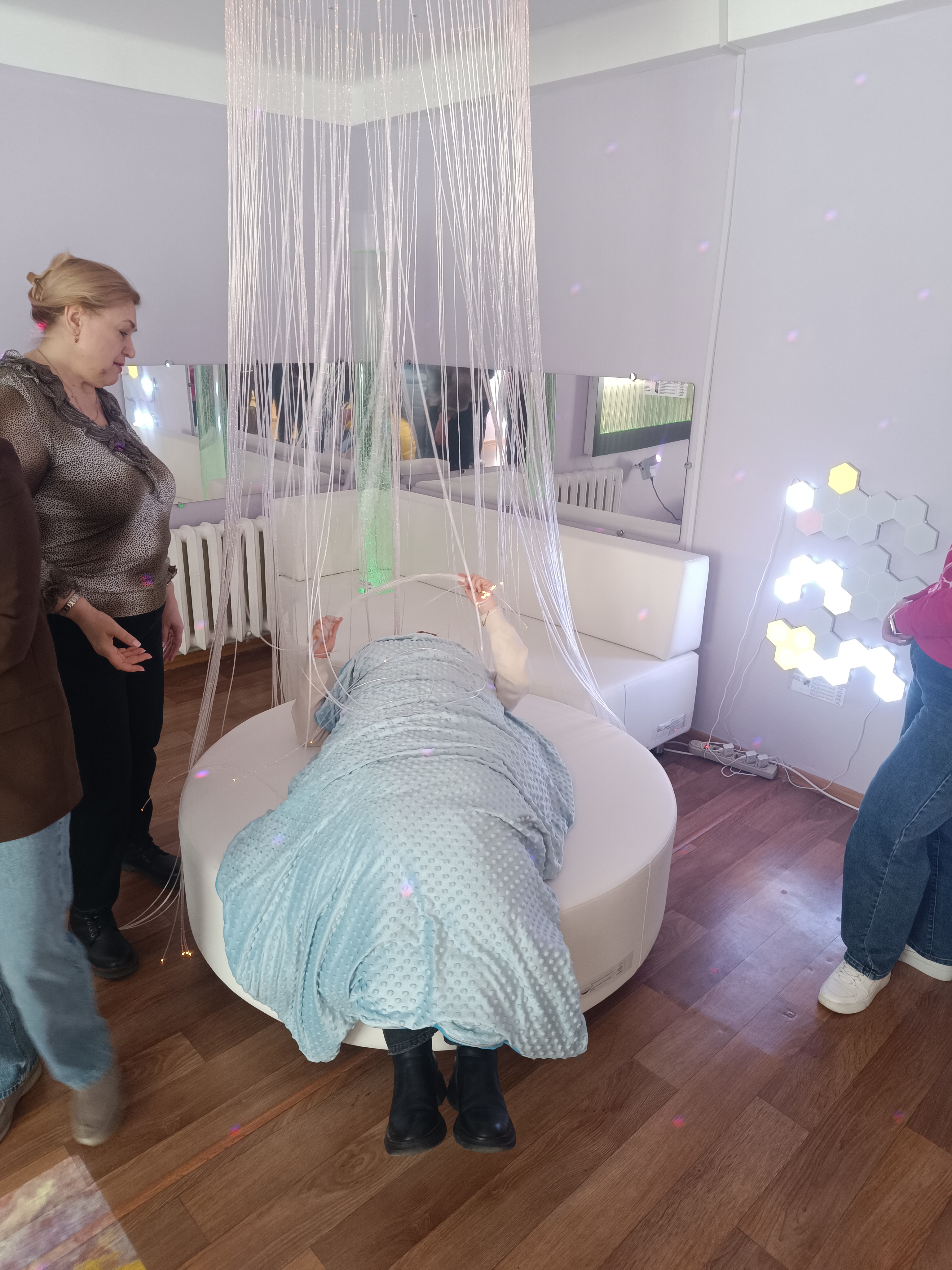 Наприклад, бульбашкові колони, світловий дощ, світлодіодні панелі, допомагають урегулювати емоційний стан та зменшити тривожність, спеціальна обтяжуюча ковдра, немов міцні обійми рідної людини, заспокоює та допомагає стабілізувати дихання. Проєктор з інтерактивними іграми дав змогу ходити доріжками серед листя чи снігу, або стати рибалкою, гравцем у гольф, футбол. І все це під аудіосупровід.