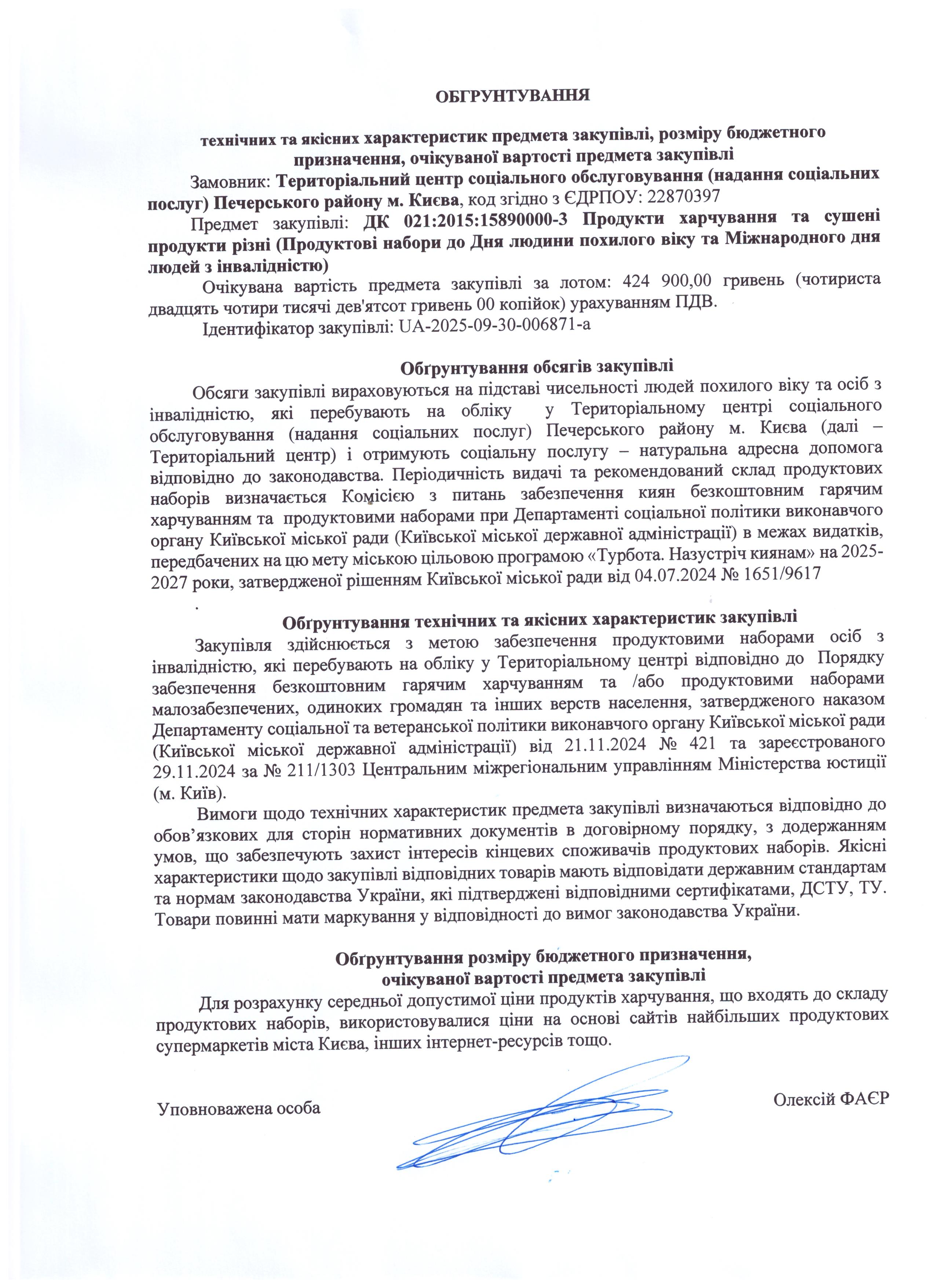 Обґрунтування технічних та якісних характеристик предмета закупівлі, його очікуваної вартості та/або розміру бюджетного призначення від 06.10.2025 (UA2025-10-06-009833-a Департамент соціальної та ветеранської політики виконавчого органу Київської міської ради (Київської міської державної адміністрації))